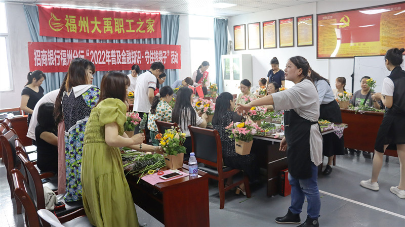 為更好地豐富職工精神文化生活,提升職工的幸福感、歸屬感,福州大禹電子工會聯合招商銀行共同舉辦了花藝培訓活動,并邀請花藝師現場指導插花技巧。